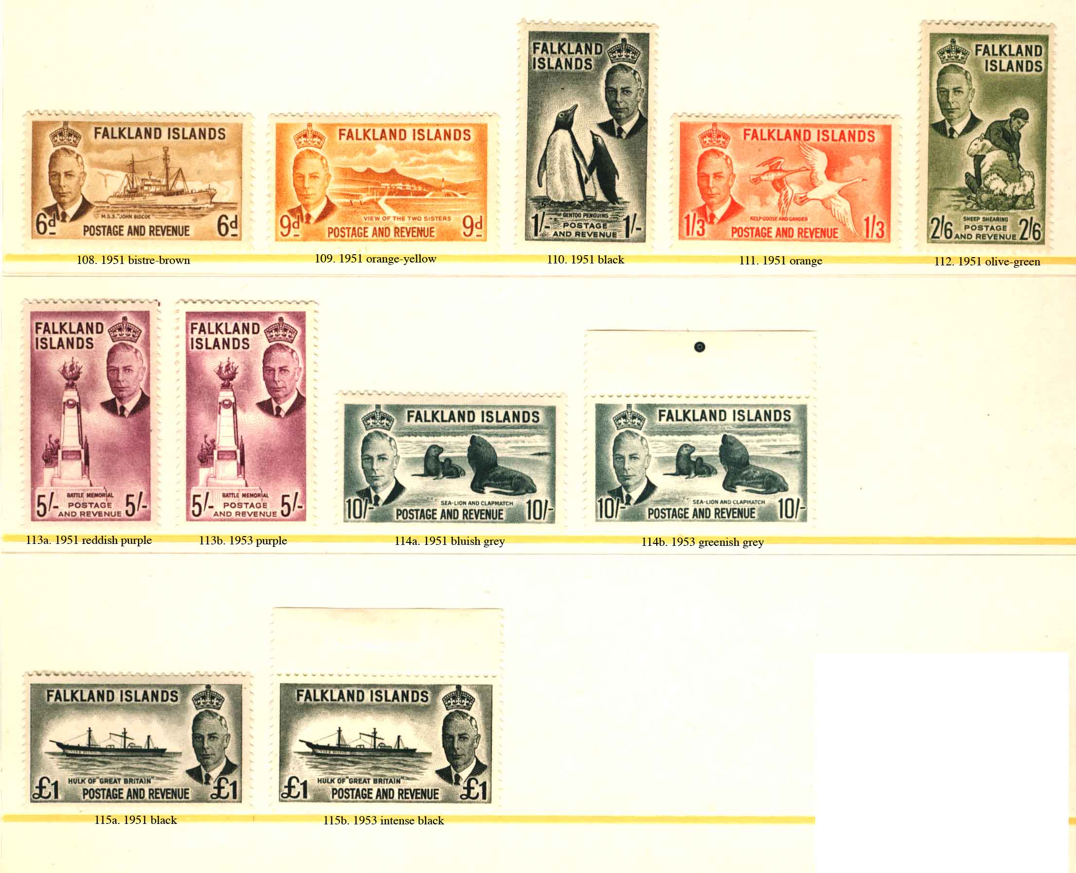 1952-53 1/2d. to £1 (no.102-115)
